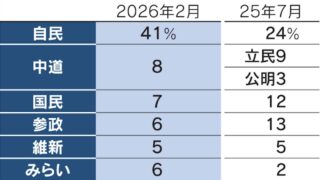 ニュー速+自民の政党支持率41%・中道8% みらい6%、国民民主・参政は低迷-日経世論調査