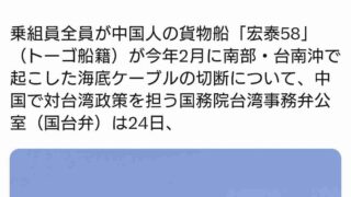 ニュー速中国「海底ケーブルを切ったのは俺たちじゃなくて台湾人。台湾人が裏で中国船を動かしていた」