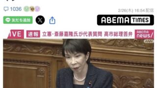 ニュー速+高市総理「他党と誤認した」 立憲に”国民会議への参加呼びかけ”と答弁するも訂正