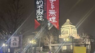 ニュー速官邸前のママたちの『戦争止めてくるわ』デモ。中国語っぽい旗が