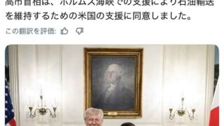 ニュー速高市首相「世界中に平和と繁栄をもたらせるのはトランプ大統領だけ」→中東で急拡散され敵国認定www