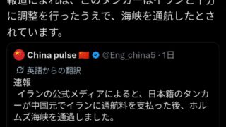 ニュー速+日本関係船舶のホルムズ海峡通過「前向きな動き」 高市首相がXに投稿