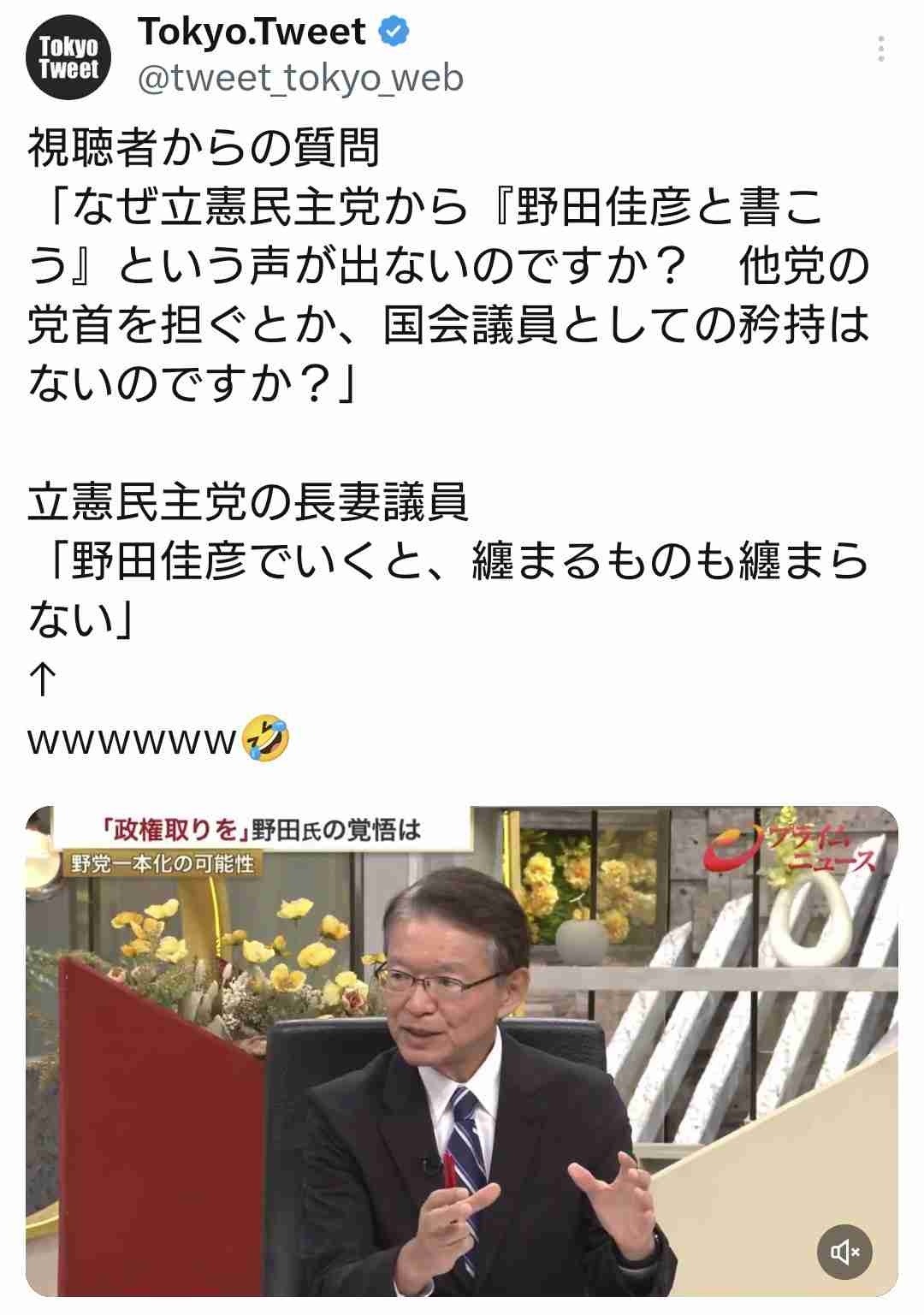 野田で纏まらないなら野党統一なんぞ無理でんな🤭