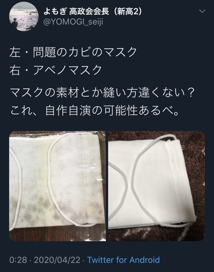 「カビマスク←政府から配布されたマスクと縫い方違いませんか?」 ネットで話題に