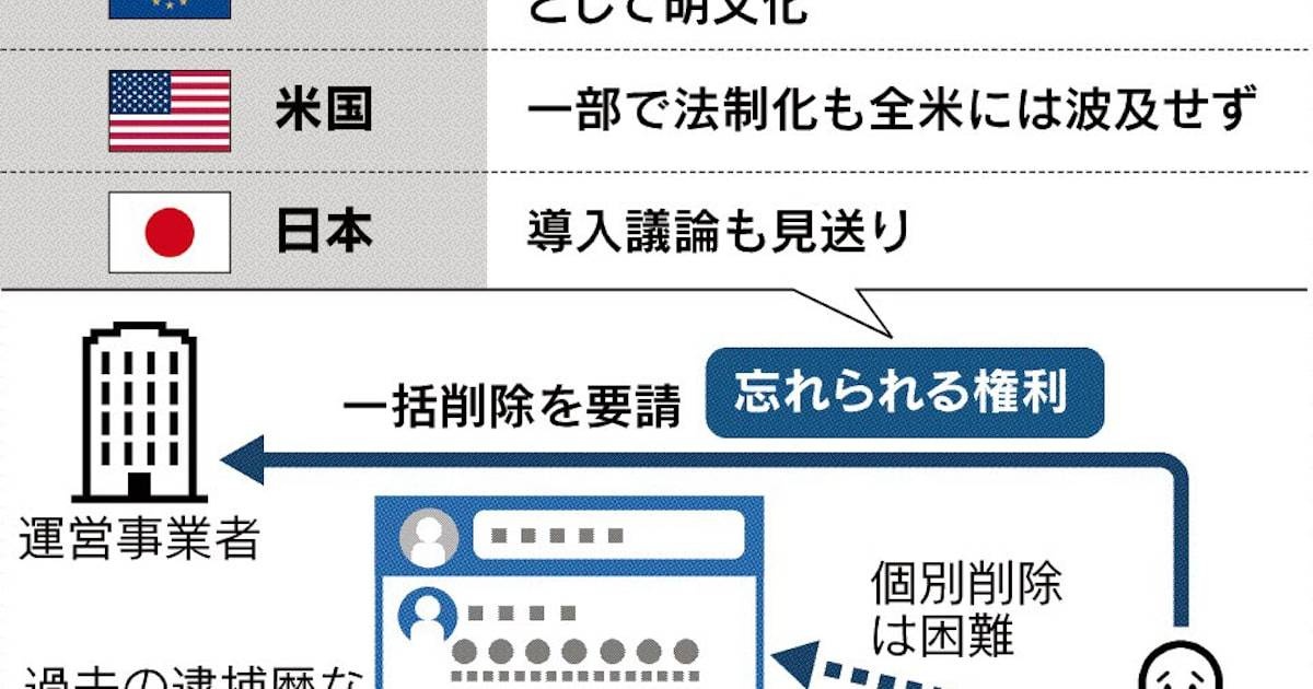 欧州連合(EU)の最高裁にあたる欧州司法裁判所は2014年、忘れられる権利を初めて認め、グーグルに検索結果の削除を命じた。その流れを受け、EUの個人情報保護のルール「一般データ保護規則」(GDPR)が権利を明文化。インターネット企業だけでなく一般企業も適用対象とした。