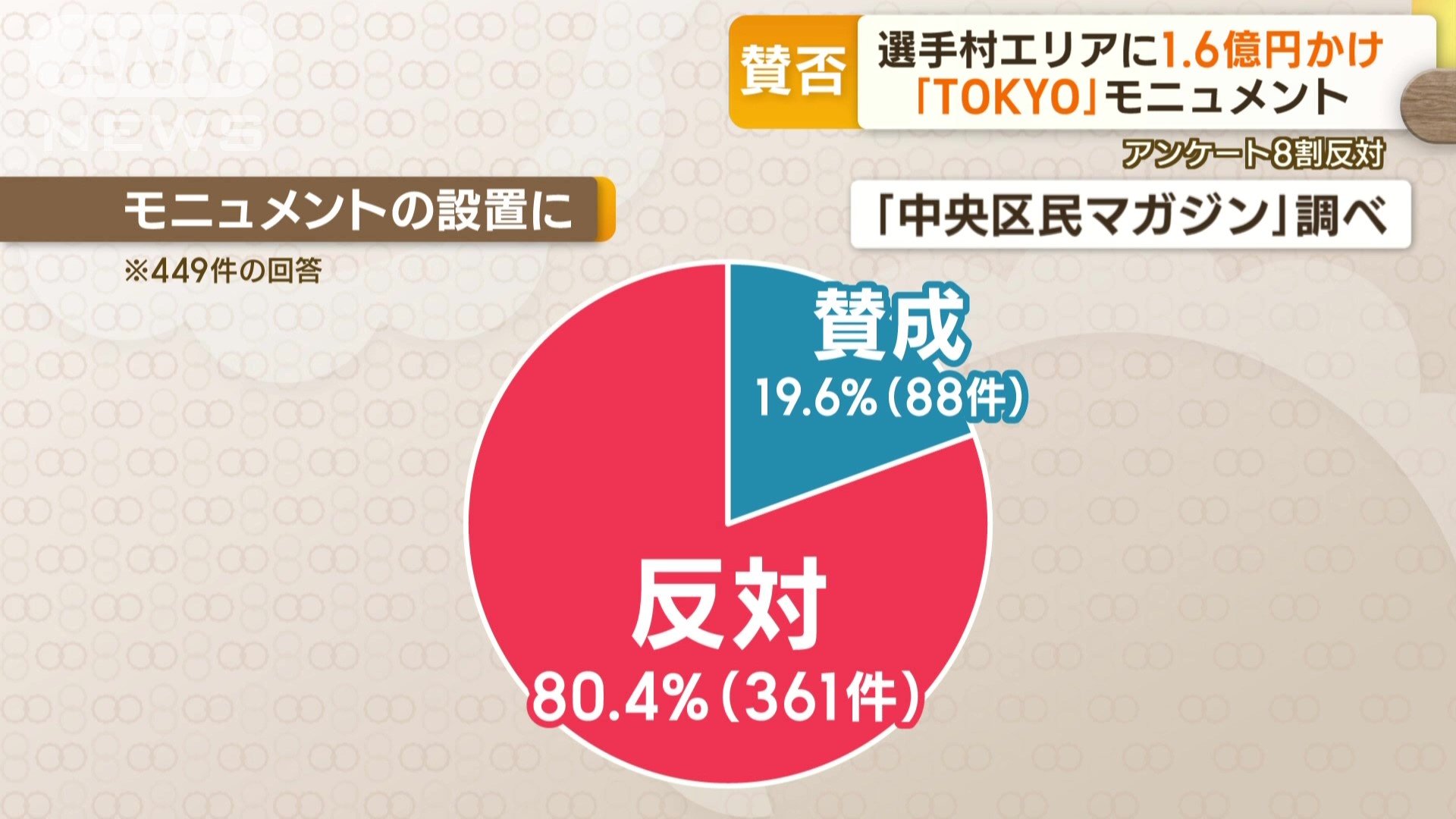 こうしたなか、「中央区民マガジン」による最新のアンケート結果が発表されました。都のモニュメント設置に賛成した人はおよそ20%だったのに対し、反対した人は4倍にあたる80%に上りました。