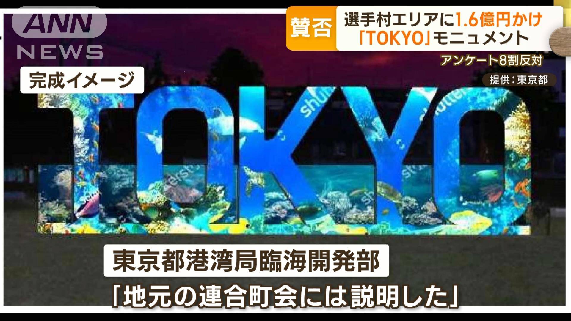 東京オリンピック・パラリンピックで選手村に使用されたエリアに「TOKYO」の文字をかたどったモニュメントを1億円以上を投じて建設する都の計画が物議を醸しています。