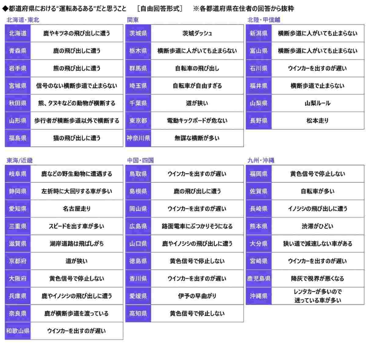 【47都道府県別調査】『運転あるあるだと思うこと』はなに?