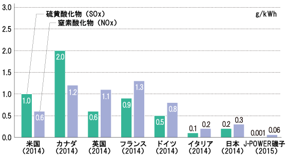 石炭が燃焼するとSOx(硫黄酸化物)やNOx(窒素酸化物)、ばいじん(すすや燃えカス)が発生します。日本は高度成長時代には大気汚染が深刻な問題でしたが、過去40年以上にわたり環境対策技術や効率的な燃焼方法を開発するなど環境負荷を低減する努力を行ってきた結果、世界の石炭火力を牽引する存在となりました。
