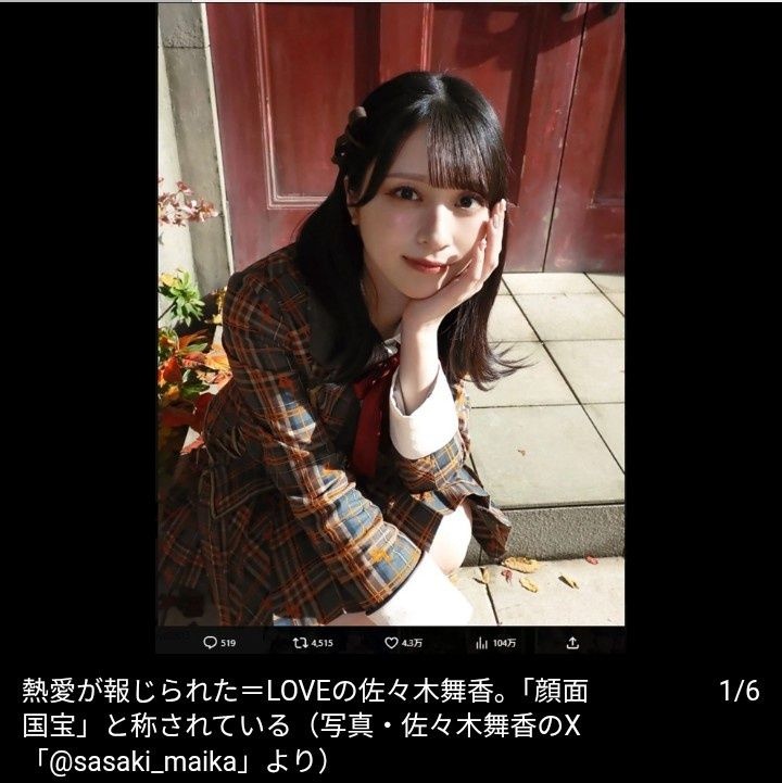 12月29日、女性アイドルグループ=LOVE (イコールラブ)のメンバー・佐々木舞香の熱愛が報じられた。いまをときめく人気アイドルの熱愛に、ざわつきがやまない。