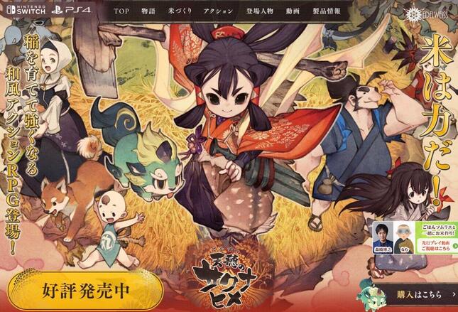 「天穂のサクナヒメ」は同人ゲームサークル「えーでるわいす」が開発し、マーベラスから販売されている。PlayStation4とNintendo Switchといったゲーム機のほか、SteamというPCソフトプラットフォームに対応しており、多くのユーザーに親しまれている。本格的すぎるコメづくりを攻略するため、農林水産省公式サイト上のコメ作り関連ページを参照するユーザーもいるという。