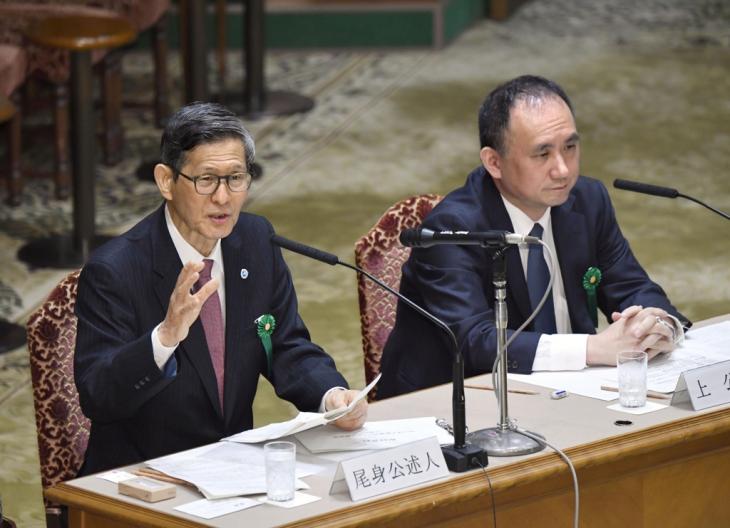 ▲上昌広(右側) 「医療ガバナンス研究所」理事長と尾身茂(左側)日本地域医療機能推進機構理事長が10日午前、日本東京で開かれた参議院予算委員会中央公聴会に出席している(別ソース:トップスターニュース)。