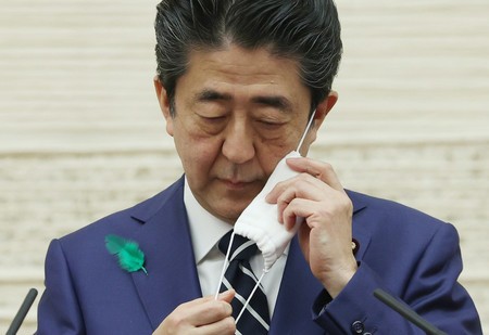 ▲緊急事態宣言の対象を全国に拡大した際の記者会見で、マスクを外す安倍晋三首相=4月17日、首相官邸【ロンドン時事】英誌エコノミストの調査部門は17日、先進各国の新型コロナウイルスへの政策対応を指数化し、「優」「良」「可」「不可」の4段階に分類して評価した分析結果を発表した。日本政府の対応は下から2番目の「可」にとどまり、高評価を得られなかった。