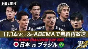 「ABEMA」は、先月14日に行われた「キリンチャレンジカップ2025 日本代表vsブラジル代表」の模様を14日午後3時から無料で再放送すると13日、発表した。