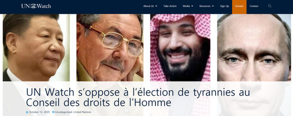 5日、国連を監視する非政府機構「国連ウォッチ」と米国のヒューマンライツ財団、ラウル・ワレンバーグ人権センターは、中国とロシア、サウジアラビア、パキスタン、キューバ、ウズベキスタンなど6カ国が人権理事国として「不適格」だとする30ページの意見書を国連に提出した。国連ウォッチのヒレル・ノイアー事務局長は「これらの独裁国家を人権に関する国連の審判に選ぶのは、放火犯を消防隊に入隊させるのと同じだ」と批判した。