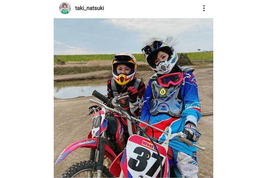 モトクロスを体験した滝菜月、久野静香アナ【写真:インスタグラム(@taki_natsuki)より】
