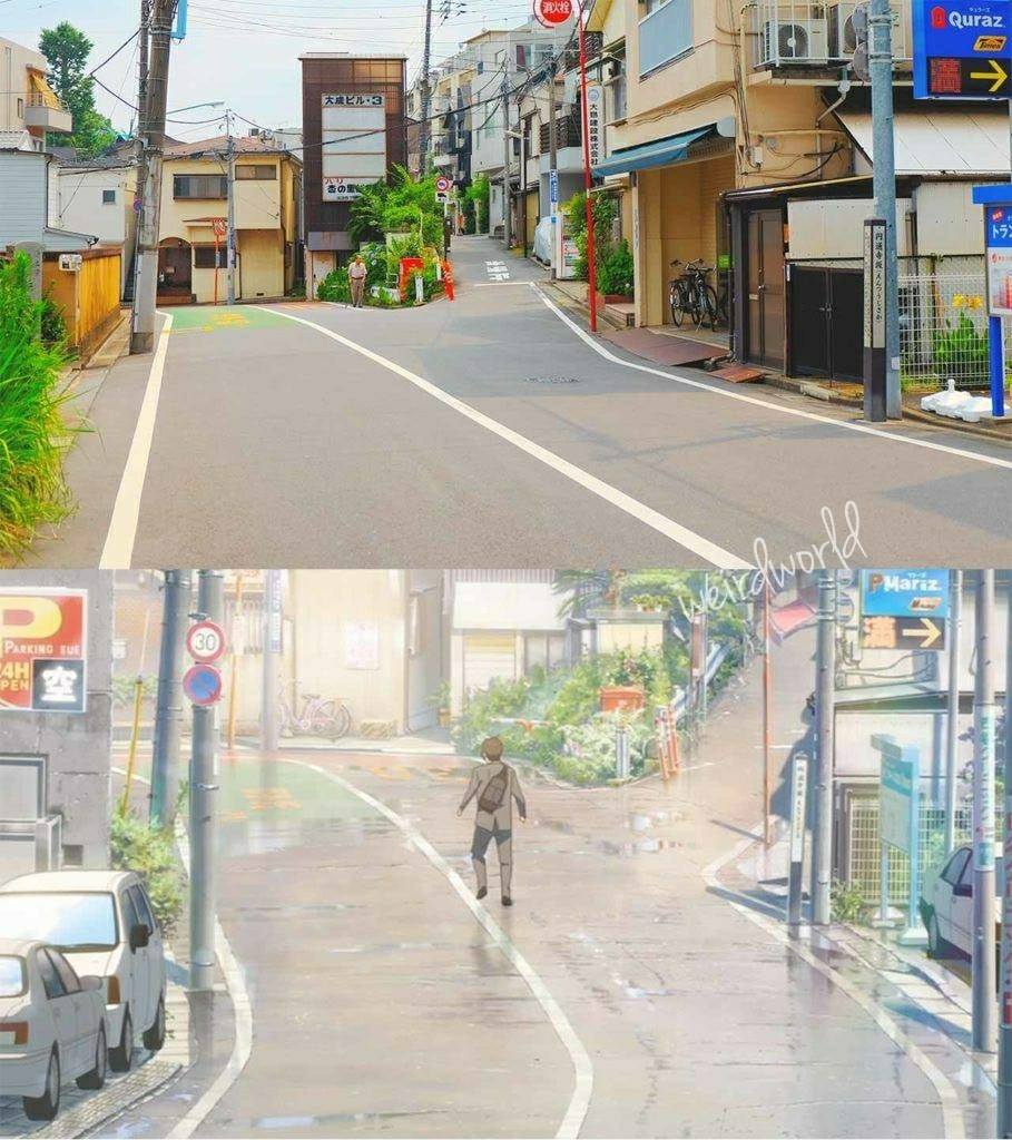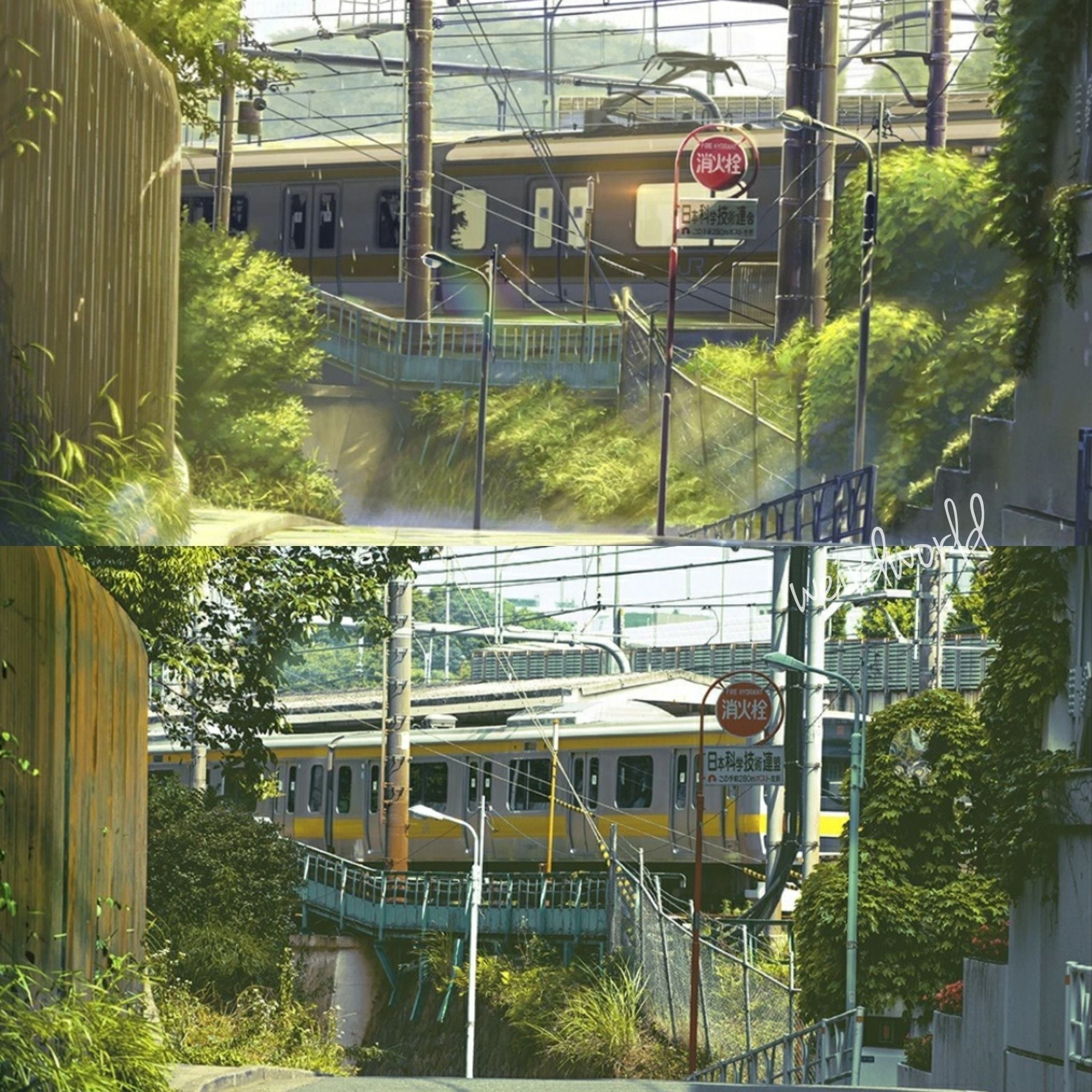 待て待て、アニメの作画と一緒な所が感動と言うが、実際の風景をまんま絵にしてるだけやん