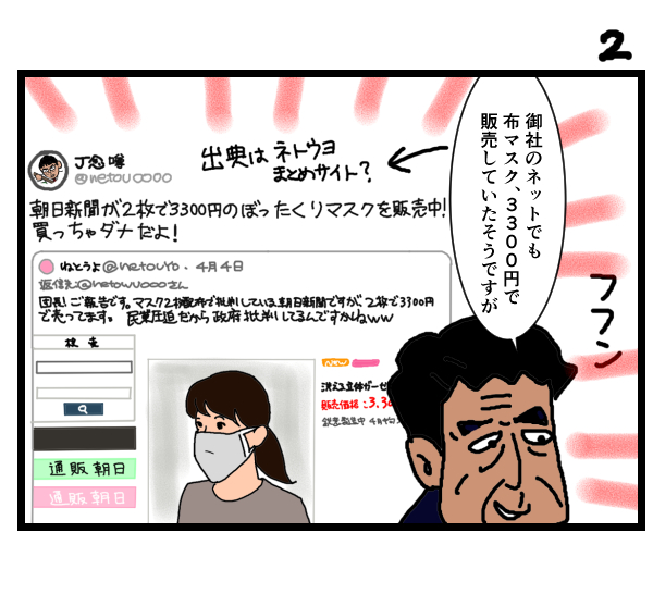 2枚4000円のマスクなんてデマ新聞朝日しか使わないのに