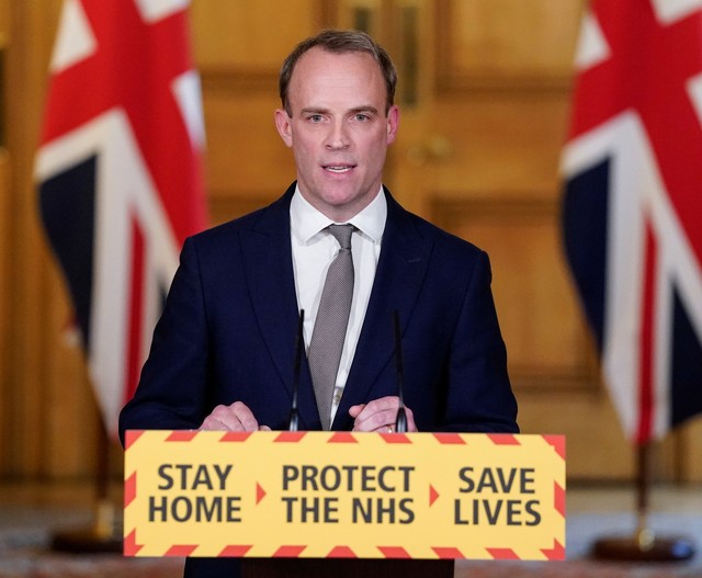 4月16日、英国のラーブ外相は、新型コロナウイルス感染発生の経緯や拡大阻止の可否を巡り、中国は厳しい質問に答えなくてはならないとの考えを示した。ロンドンの首相官邸で撮影、提供写真(2020年 ロイター/Andrew Parsons/10 Downing Street/Handout)[ロンドン 16日 ロイター] – 英国のラーブ外相は16日、新型コロナウイルス感染発生の経緯や拡大阻止の可否を巡り、中国は厳しい質問に答えなくてはならないとの考えを示した。