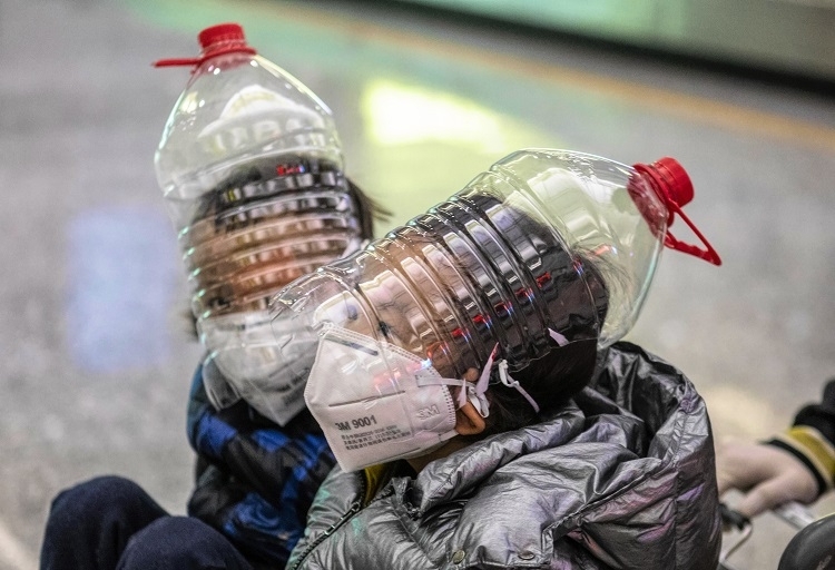 広州白雲国際空港の乗客にはこんな姿も見受けられた(EPA=時事)