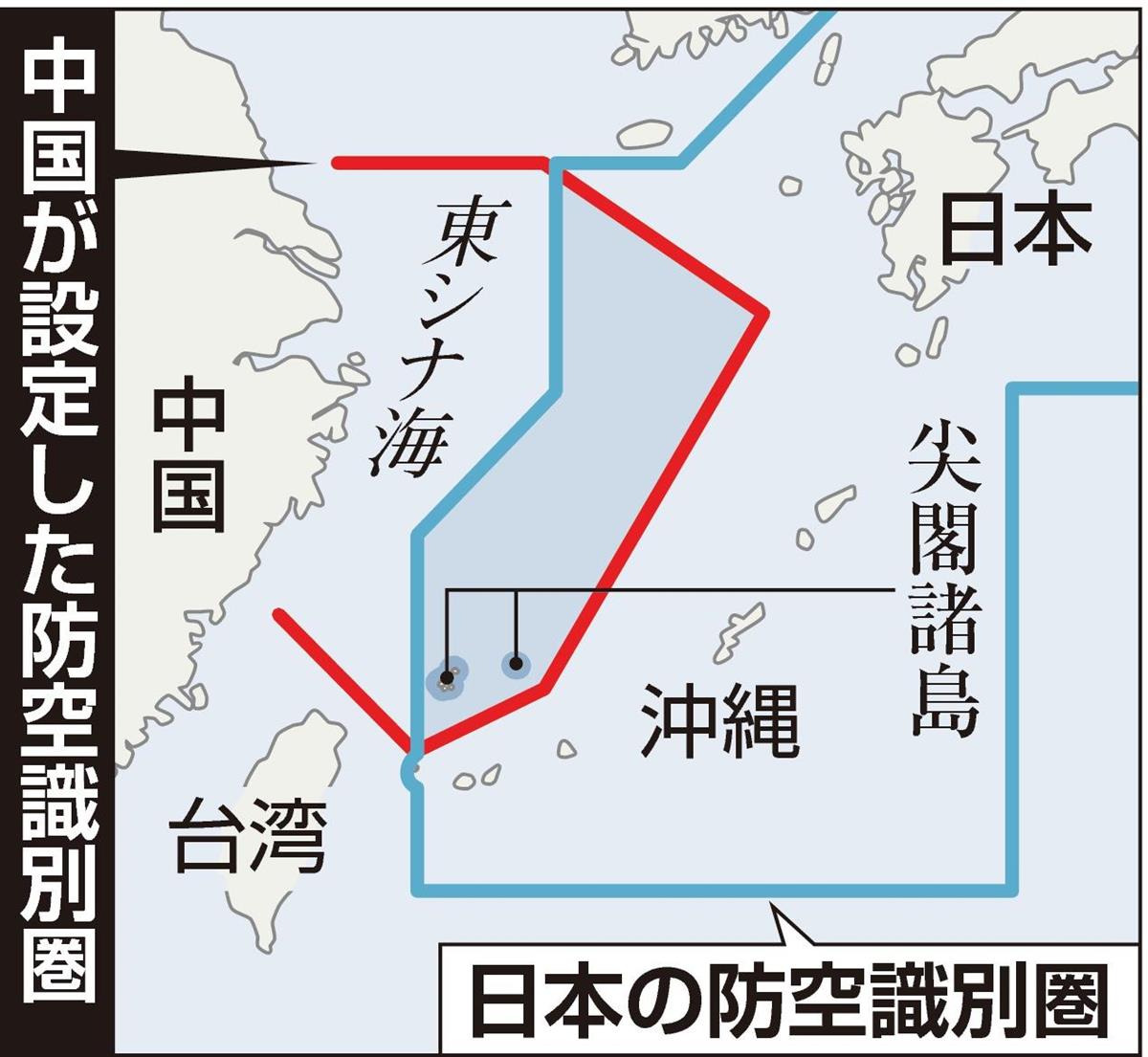最近では平成25年11月に中国が一方的に設定した防空識別圏の海域に