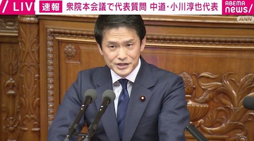 24日、衆院本会議において、中道改革連合の小川淳也代表が代表質問に立ち、力強く発言すると議場内に大きな拍手が響いた。