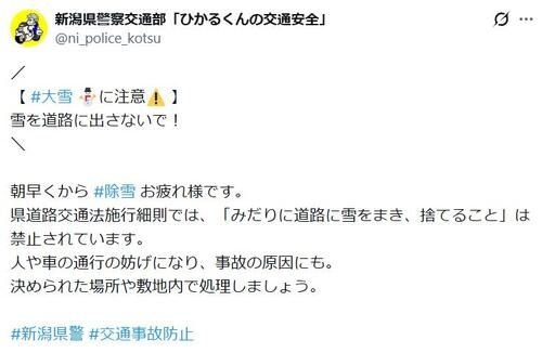 【衆院選】米山隆一氏の“雪かき”動画に新潟県警が反応!?「雪を道路出さないで」注意喚起