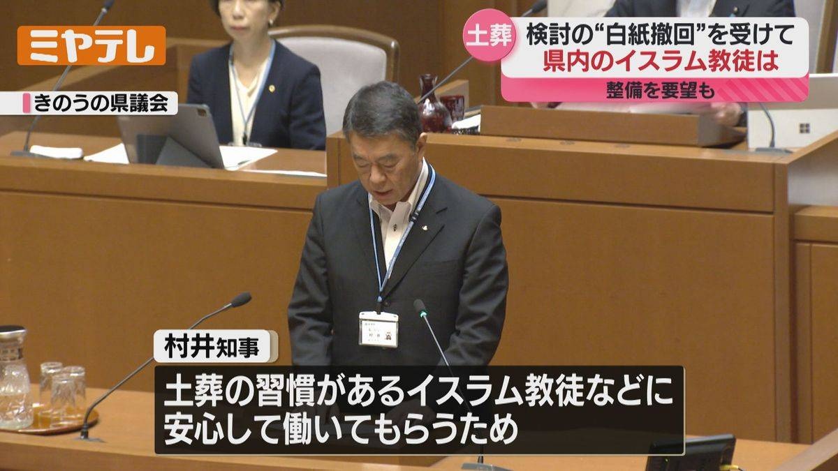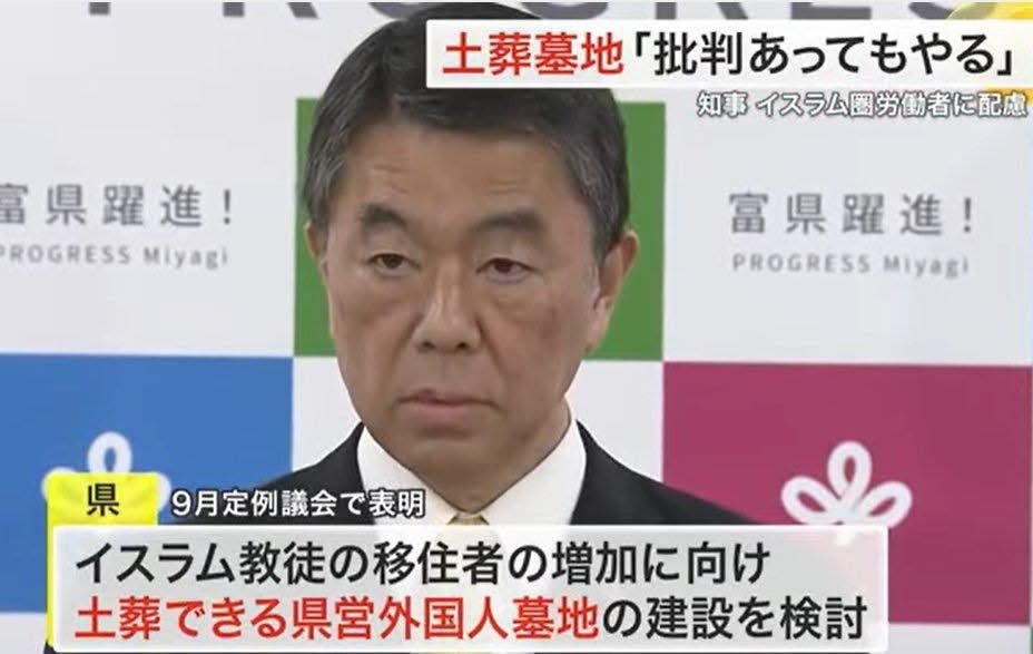イスラムの土葬墓地造ると言いだした(なお知事にその権限はない)が選挙前に取り消した現職知事と