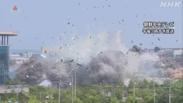 北朝鮮の国営テレビは、南西部のケソン(開城)にある韓国との共同連絡事務所を16日、爆破した際の映像を公開しました。