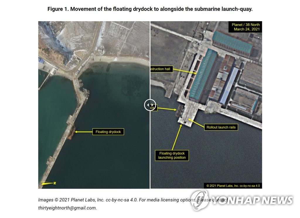 38ノースは潜水艦の進水準備の動きを衛星写真を使って報じた
