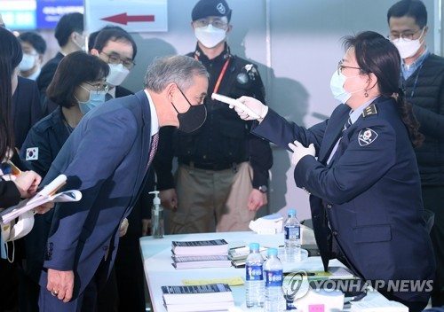 政府は韓国からの渡航者の入国を制限する国や地域がこれ以上増えることを防ぐため、出国するすべての旅客を対象に、出発ロビーの入り口、チェックインカウンター、搭乗口の3カ所で37.5度以上の発熱がないか確認するなど、検疫を強化した。