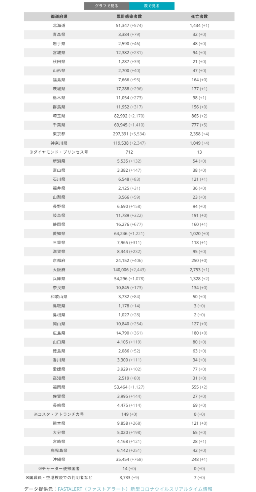 北海道51,347(+574) 1,434(+1)