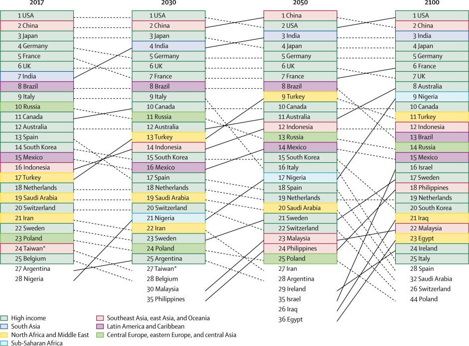 中国が2100年に一位→二位になってる根拠が興味をそそるな