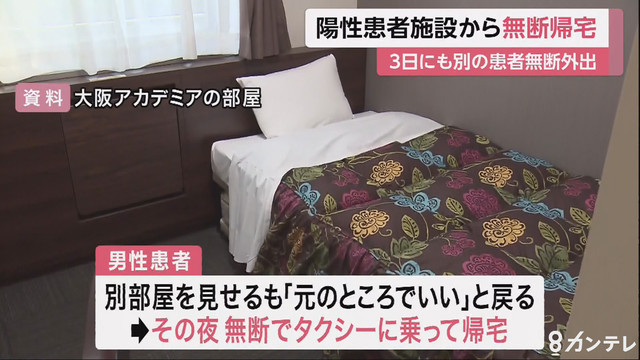 大阪市の宿泊施設で療養していた新型コロナウイルスの陽性患者が無断で帰宅したと、大阪府が発表しました。