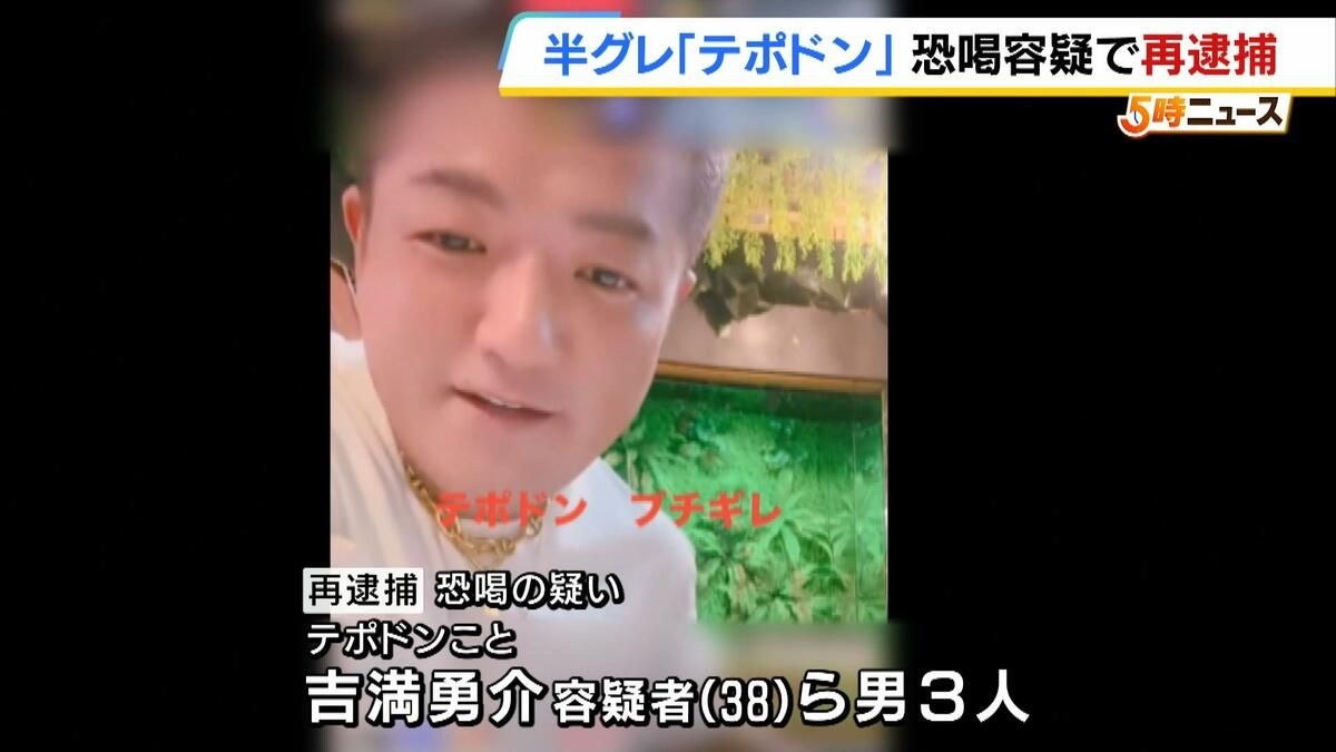 怒声を上げて凄む男。恐喝の疑いで再逮捕されたのは「テポドン」こと吉満勇介容疑者(38)ら男3人です。