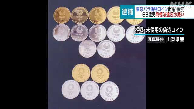 東京パラリンピックの記念コインに似せた偽物のコインをフリマサイトで出品し、山梨県と長野県のあわせて2人に販売したとして大阪府に住む66歳の男が商標法違反の疑いで逮捕されました。