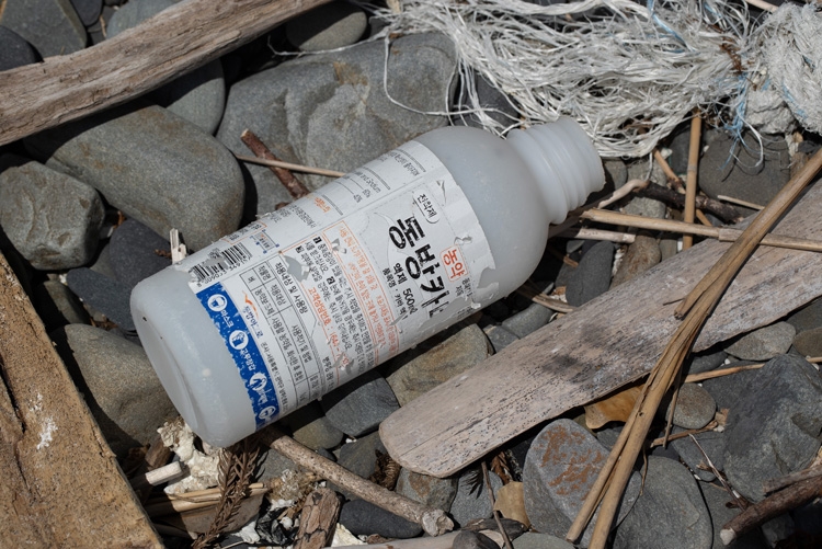 周囲に散乱する注射器や薬瓶、消毒液のボトルにもハングルが記載されており、医療廃棄物がまとめて流れ着いているようだ。沿岸部に住む島民はこう話す。