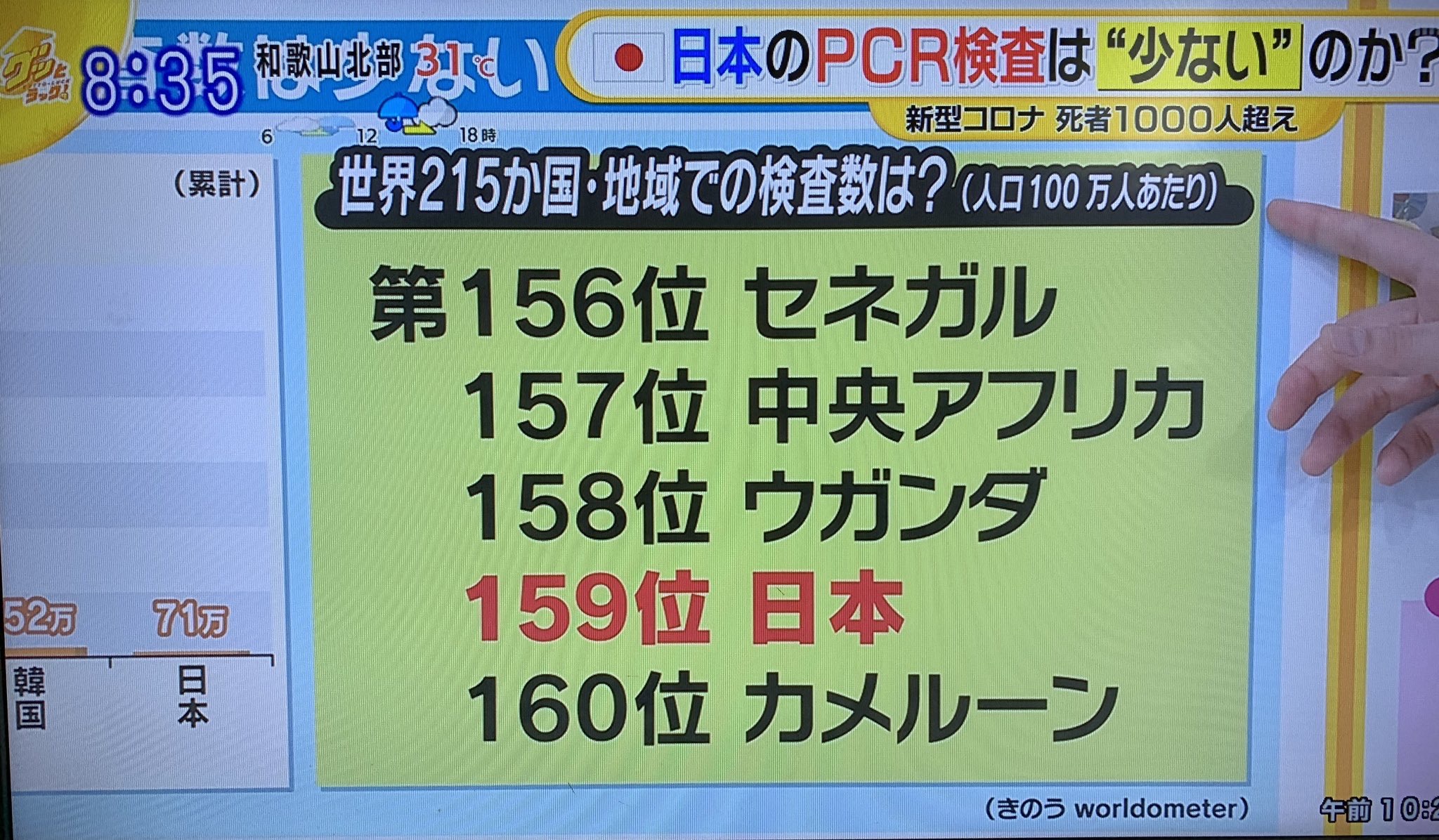 - 世界160位ってことは検査するなっていう謎の勢力の意見が通ってる状況だ