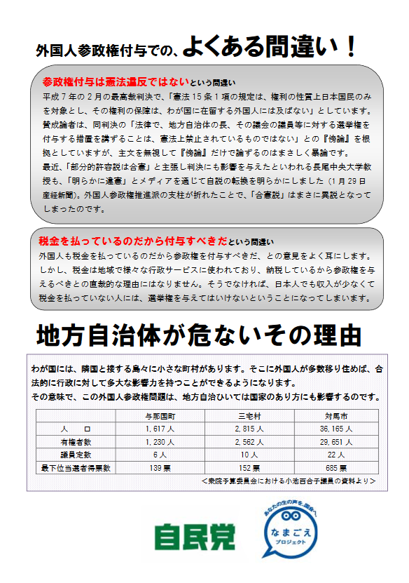 【悲報】 自民党、外国人参政権に反対だった 画像あり