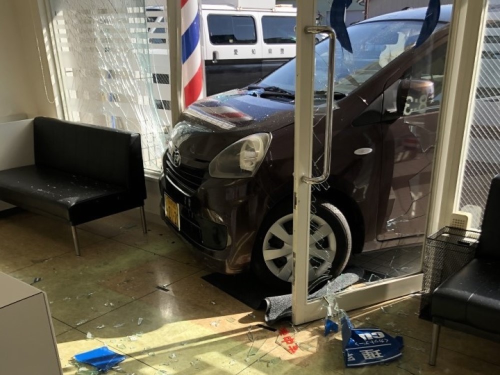 【愛知】ドアガラス破壊…理髪店に車で訪れた78歳男性 駐車しようとして店に突っ込む「踏み間違えた」
