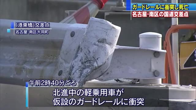3日未明、名古屋市南区の交差点で、軽乗用車がガードレールに衝突し運転していた男性が死亡しました。