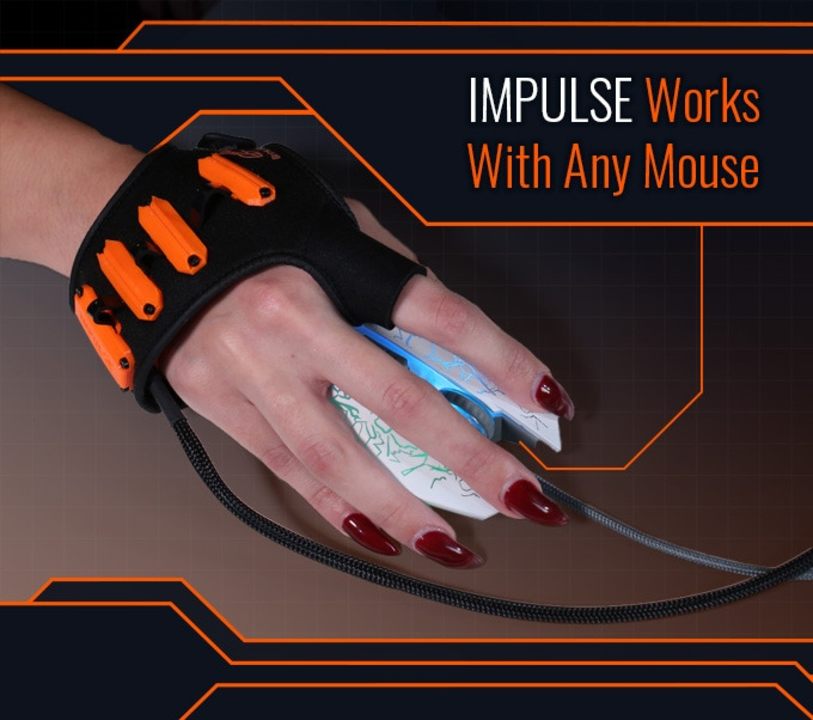 まるで人体をハックするかのように、手の甲の筋電を感知して、指先がマウスをクリックするより先にクリック入力をするゲーミング手袋「Impulse」が、
