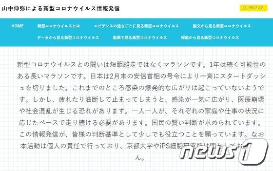 読売新聞などによれば、2012年のノーベル生理学賞受賞者である京都大学の山中伸弥教授は、コロナ19の症状と日本政府の対応方針、そして各国の論文やメディアの報道などを紹介するWEBサイト、『山中伸弥による新型コロナウイルス情報発信( https://www.covid19-yamanaka.com )』を去る13日から運営している。
