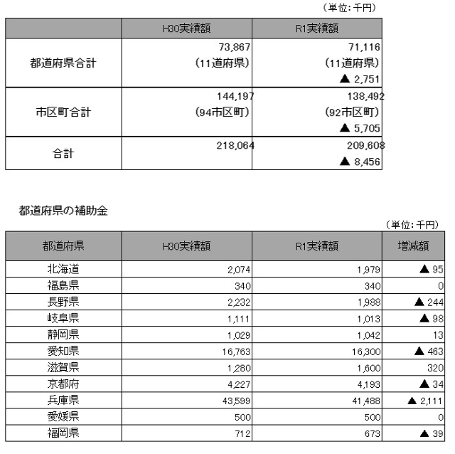 ●朝鮮学校への地方からの支援は2.1億円支援(前年度850万円減))