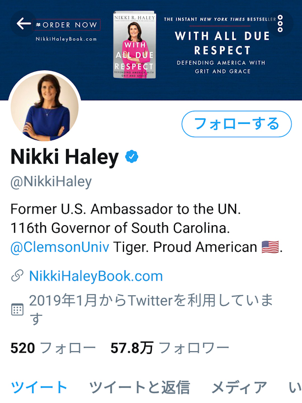 ニッキ・ヘイリーは州知事選挙を狙っていると思った。その関係だろう。 - 36 名前:押しボタン式の匿名希望者 投稿日時:2020/02/16(日) 01:43:12.77 ID:eId3WsfP0
