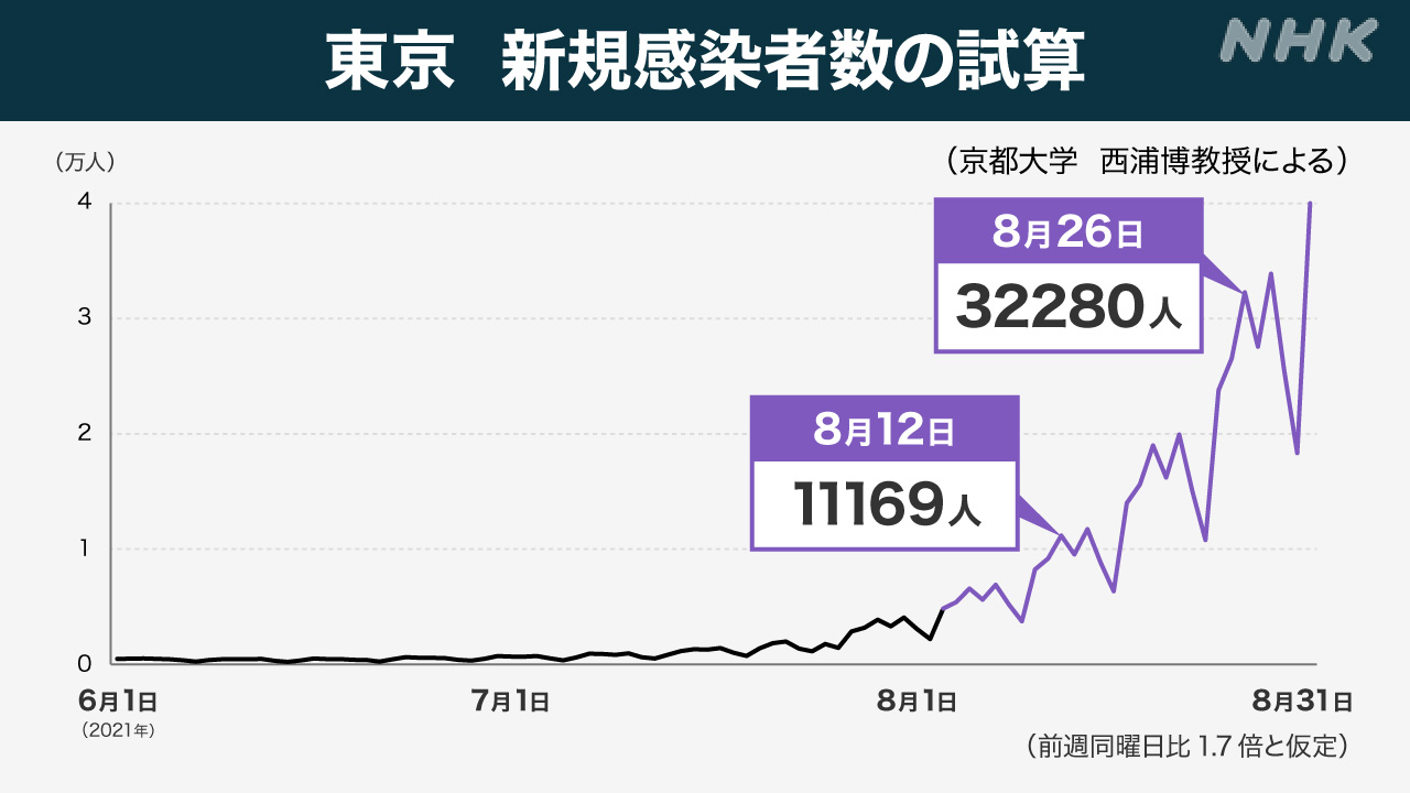 - 【有能】西浦教授がトンキン新規感染者が今月末には平均で3万人/day程度になると試算公表…