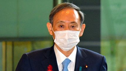 首相官邸に入る菅義偉首相=2020年10月1日午前9時、恵原弘太郎撮影