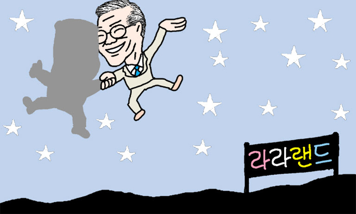 昨年、青瓦台の経済首席秘書官が「景気反騰、雇用・分配改善」と記者会見で語ったところ、企画財政部の2年後輩である野党議員が「月の国での認識だ」「現実を直視せよ」と批判した。月の国で暮らしていたその経済首席秘書官は天下りで都市銀行の頭取になった。一方、「北朝鮮が核放棄する可能性は事実上ない」と言った統一部長官は解任された。月の国やラ・ラ・ランドで暮らしていればもちを与え、現実の話をすればおしまいになるのだ。