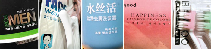 ベトナムの生活用品、インテリア雑貨売り場では、韓国人が首をかしげる文章が書かれた商品を簡単に発見できる。「多く香り香水」「自分にちょっと楽しい」などという具合にいかにも翻訳機を使ったようなおかしな表現の韓国語が多い。マッサージ用具に「マッサージ頭ブラシ」と書かれていたりと、説明がおかしいものもあふれている。