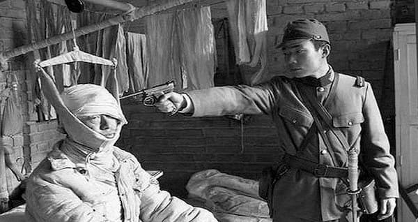 ▲頭を負傷した中国軍を拳銃で56す日本軍将校.